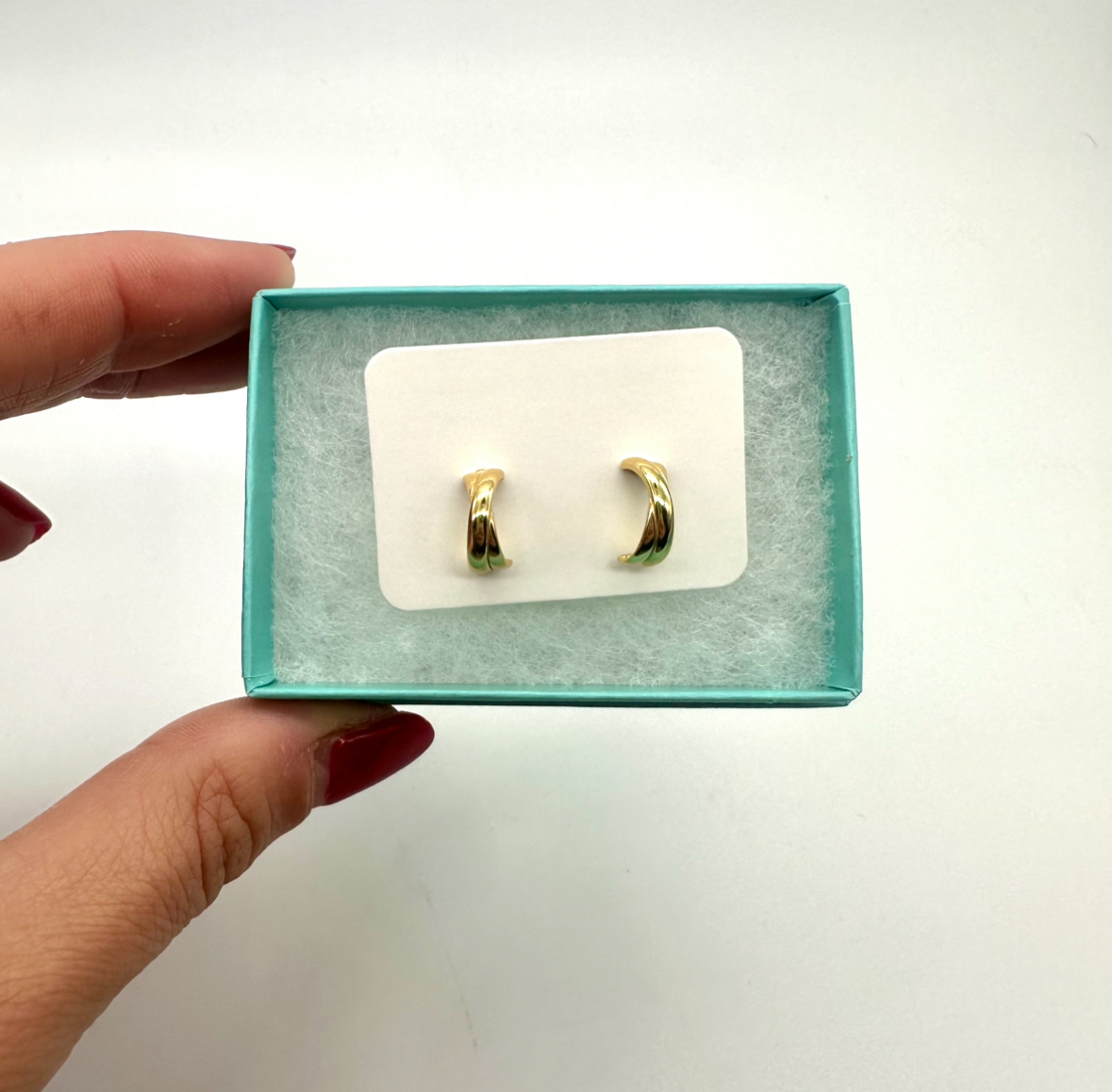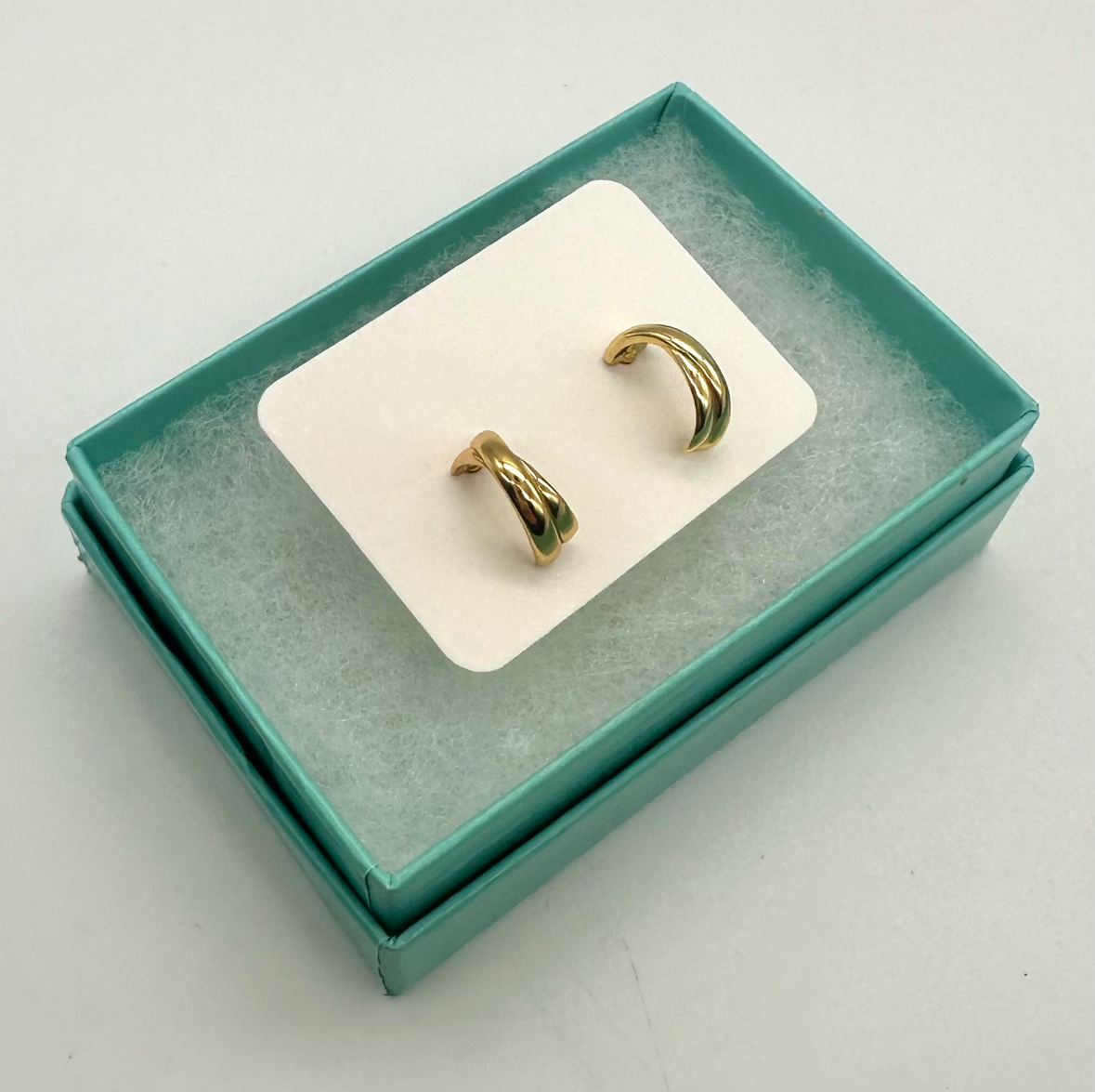 Blue Salt, gold plated on sterling silver (925) chunky hoop style stud earrings.