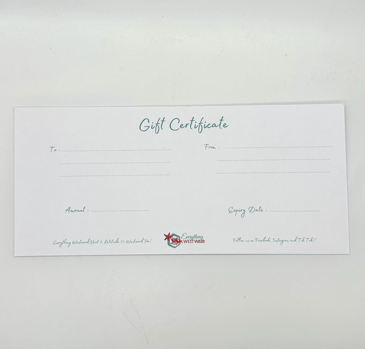 | Gift Voucher Amount | £10, £20, £30, £40, £50, £100 |